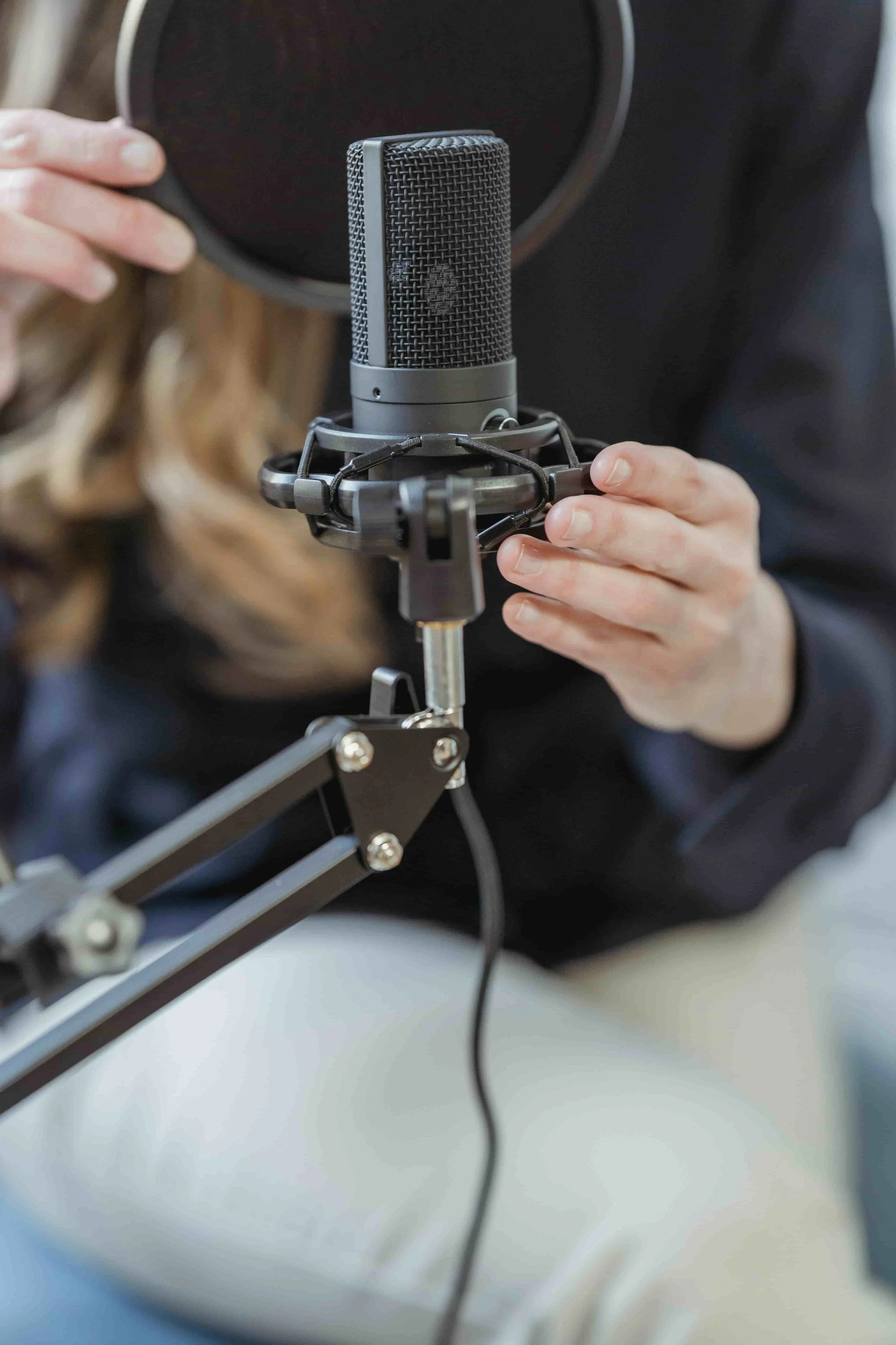 Placering av mikrofonen: Håll mikrofonen ungefär 15–20 cm från munnen. Placera den något snett framför dig för att undvika direkt luftflöde som kan skapa störningar.
